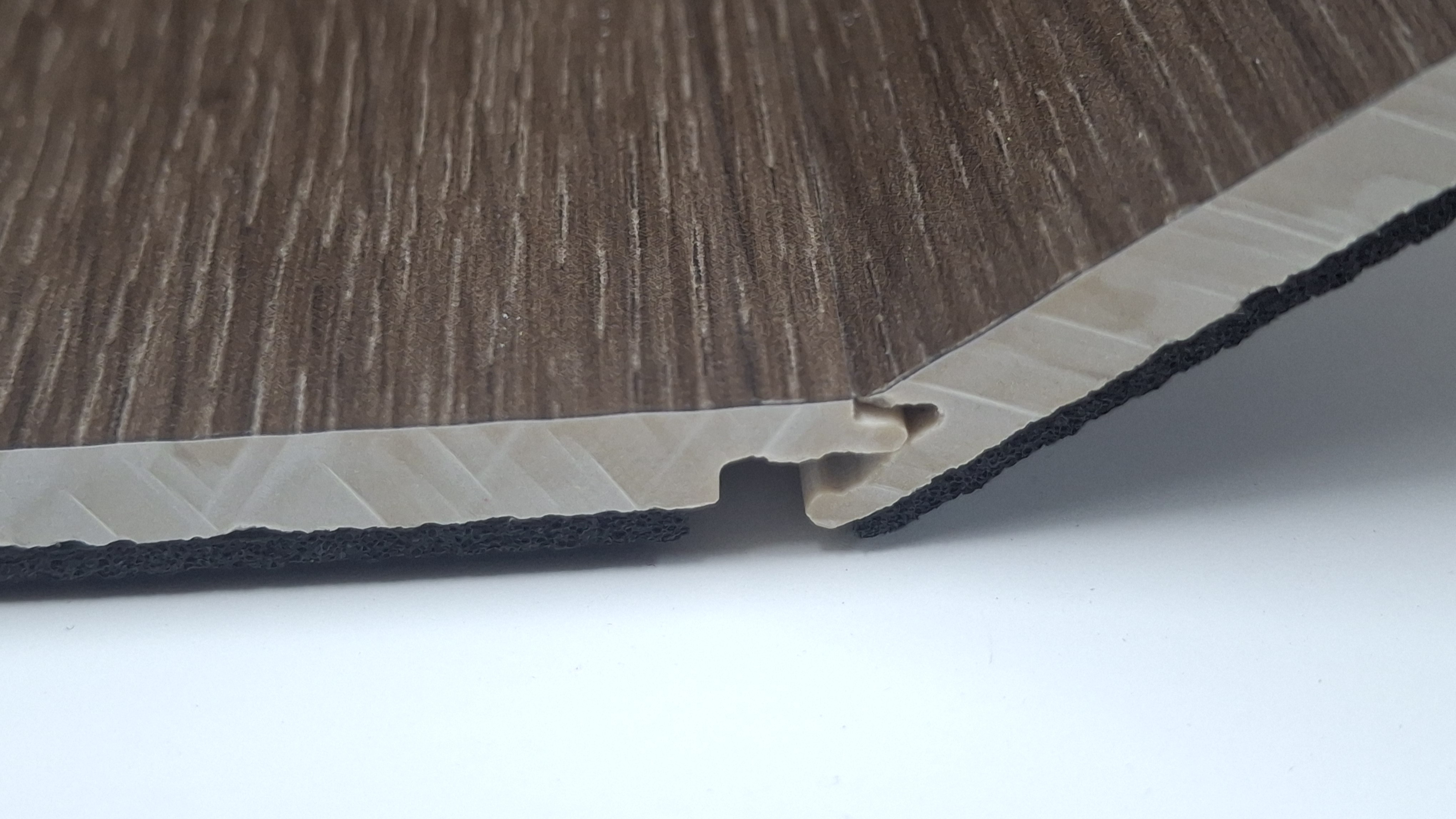 Lapisan paling bawah biasanya menggunakan IXPE foam atau lapisan busa yang berfungsi sebagai peredam suara dan penambah kenyamanan pijakan. Lapisan ini membantu mengurangi suara langkah kaki sekaligus memberikan sedikit efek empuk saat diinjak.